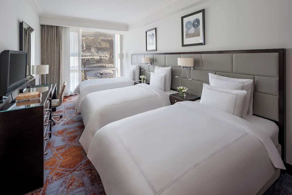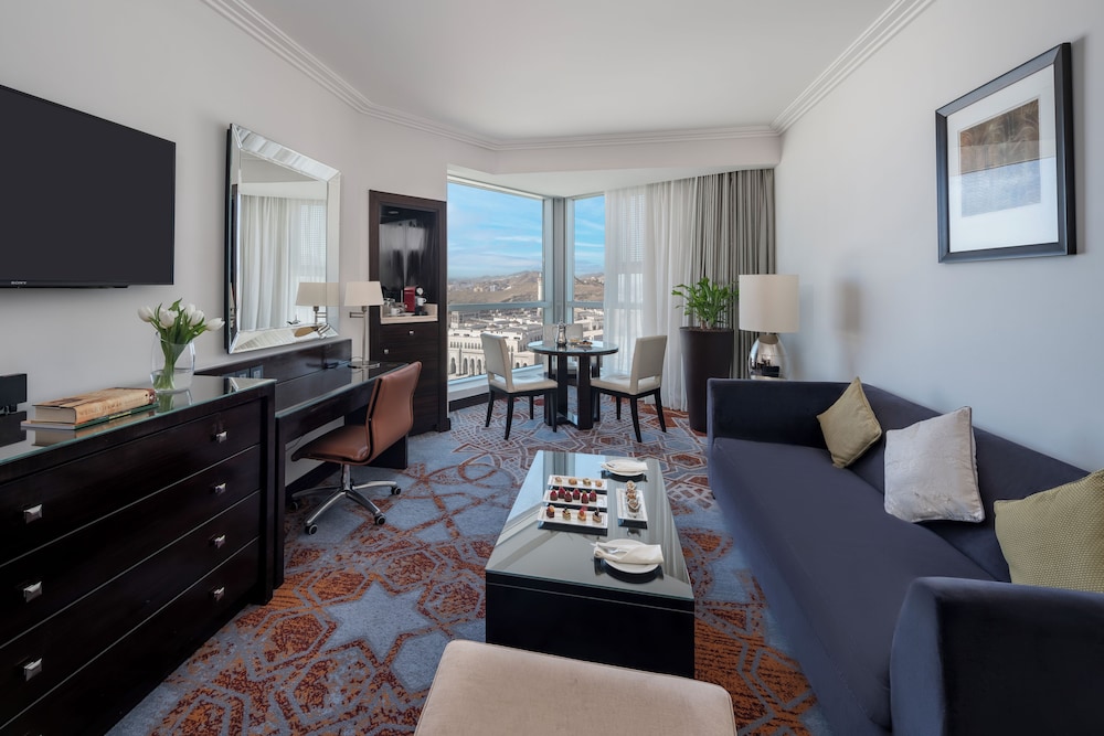 Swissôtel Makkah is a luxury hotel located in the city of Mecca, Saudi Arabia. It is situated in the Abraj Al Bait Towers complex, which is one of the largest buildings in the world and is located near the Masjid al-Haram, the holiest site in Islam. Here are some key features and information about Swissôtel Makkah: Location: Swissôtel Makkah is located in the Abraj Al Bait Towers complex, just a short walk away from the Masjid al-Haram. Its strategic location offers convenient access to the Grand Mosque for pilgrims visiting Mecca. Accommodation: The hotel offers a range of well-appointed rooms and suites, designed to provide comfort and luxury to guests. The rooms are equipped with modern amenities such as flat-screen TVs, minibars, and Wi-Fi. Dining: Swissôtel Makkah features several dining options, including restaurants and cafés, serving a variety of cuisines. Guests can enjoy international dishes as well as traditional Middle Eastern and Saudi Arabian cuisine. Facilities: The hotel provides a range of facilities to enhance guests stay. These may include a fitness center, spa, prayer rooms, business center, and meeting rooms. Views: Depending on the room location, guests may have the opportunity to enjoy stunning views of the Masjid al-Haram or the city of Mecca. Hajj and Umrah Services: Swissôtel Makkah offers special services for guests performing the Hajj or Umrah pilgrimage. These services may include assistance with visa processing, transportation to the holy sites, and guidance from experienced staff.