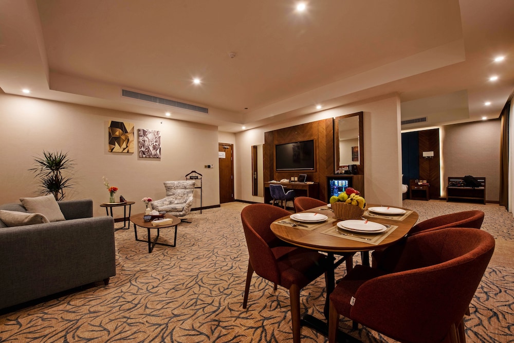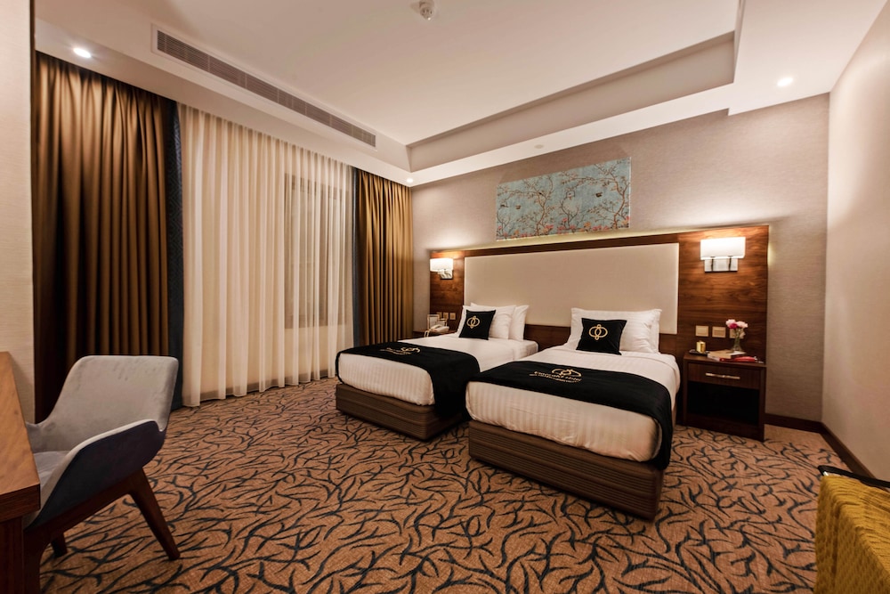 Located in Jeddah, 3.3 miles from Jeddah Corniche, Emerald Hotel provides accommodations with an outdoor swimming pool, free private parking, a fitness center and a shared lounge. This 4-star hotel offers a business center and a concierge service. The property has a 24-hour front desk, airport transportation, room service and free WiFi throughout the property. The hotel will provide guests with air-conditioned rooms offering a desk, an electric tea pot, a fridge, a minibar, a safety deposit box, a flat-screen TV and a private bathroom with a bidet. Guests at Emerald Hotel can enjoy a continental breakfast. The accommodation has a sun terrace. Jeddah Mall is 3.8 miles from Emerald Hotel, while Al Andalus Mall is 4.5 miles away. The nearest airport is King Abdulaziz International Airport, 9.3 miles from the hotel.