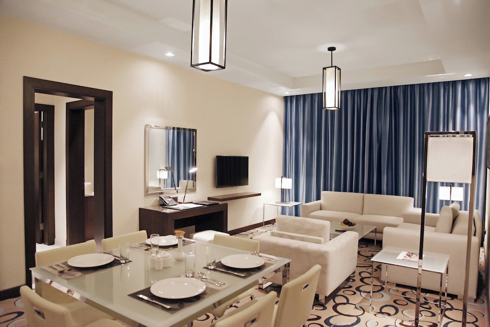 Marriott Executive Apartments Madinah offers a luxurious and comfortable accommodation option for travelers visiting the holy city of Madinah in Saudi Arabia. Situated in close proximity to the renowned Al-Masjid an-Nabawi (the Prophets Mosque), this exceptional residence offers a blend of modern elegance, thoughtful amenities, and attentive service. The apartments at Marriott Executive Apartments Madinah are designed to provide guests with a comfortable and homely environment, whether they are staying for a short or extended period. Each apartment is elegantly furnished and features a separate living area, a fully equipped kitchen, and a private bathroom. Guests can enjoy the comforts of home while experiencing the indulgence of a premium hotel. The hotel provides a variety of amenities and services to enhance guests stay. These include 24-hour front desk assistance, housekeeping, and a dedicated concierge team to cater to individual needs. For fitness enthusiasts, there is a well-equipped gymnasium where guests can stay active during their stay. Additionally, the hotel offers convenient on-site parking facilities.