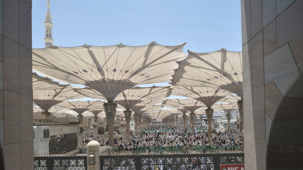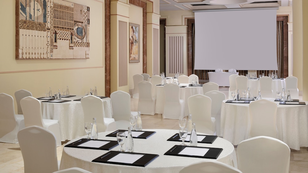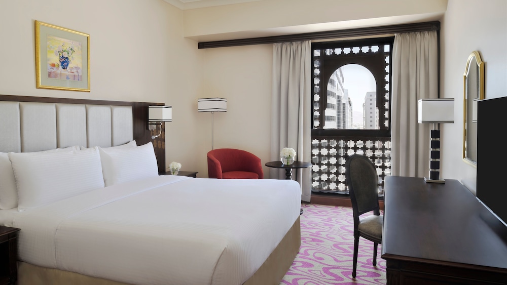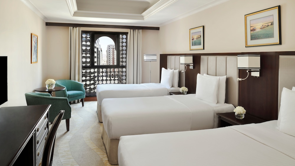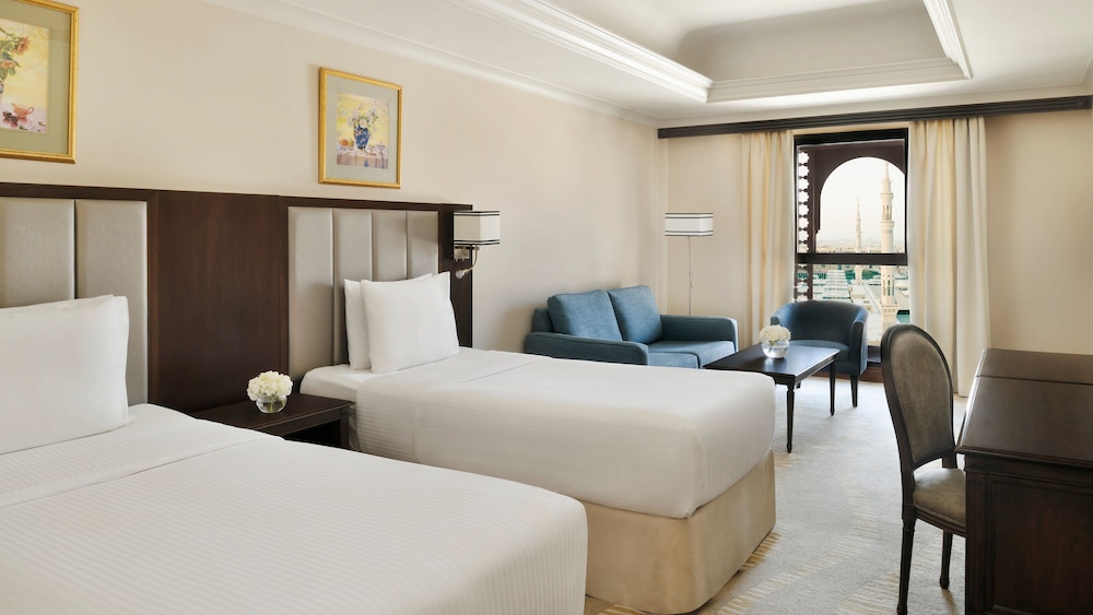 The Intercontinental Madinah-Dar Al Iman is a prestigious and iconic hotel located in the heart of Madinah, Saudi Arabia. Situated just steps away from the Holy Mosque of Al-Masjid an-Nabawi, the hotel offers unparalleled convenience and luxury for pilgrims and visitors. As you enter the Intercontinental Madinah-Dar Al Iman, you are greeted by a grand and elegant lobby that exudes opulence and sophistication. The hotels design seamlessly blends modern aesthetics with traditional Arabian influences, creating a captivating ambiance that reflects the rich heritage of the region. The rooms and suites at Intercontinental Madinah-Dar Al Iman are meticulously designed to provide a luxurious and comfortable retreat. Each accommodation is exquisitely furnished with elegant decor, plush bedding, and modern amenities. Guests can expect amenities such as flat-screen TVs, high-speed internet access, minibars, spacious bathrooms, and 24-hour room service. Some rooms may offer stunning views of the Holy Mosque, allowing guests to experience the spiritual aura from their windows.